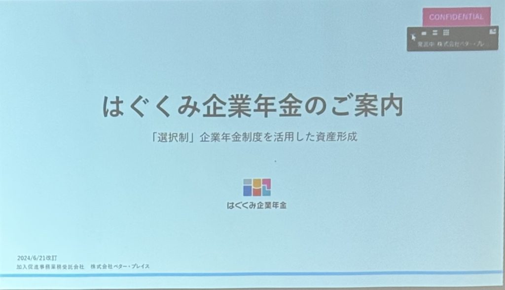 はぐくみ企業年金説明会((株)ベタープレイス)zoom お知らせ 2025.09.25 社員旅行で「大阪・関西万博」へ行ってきました 春江西小学校「町たんけん」の学習 工場長をお招きして懇親会を開催 はぐくみ企業年金説明会((株)ベタープレイス)zoom 消防訓練2025